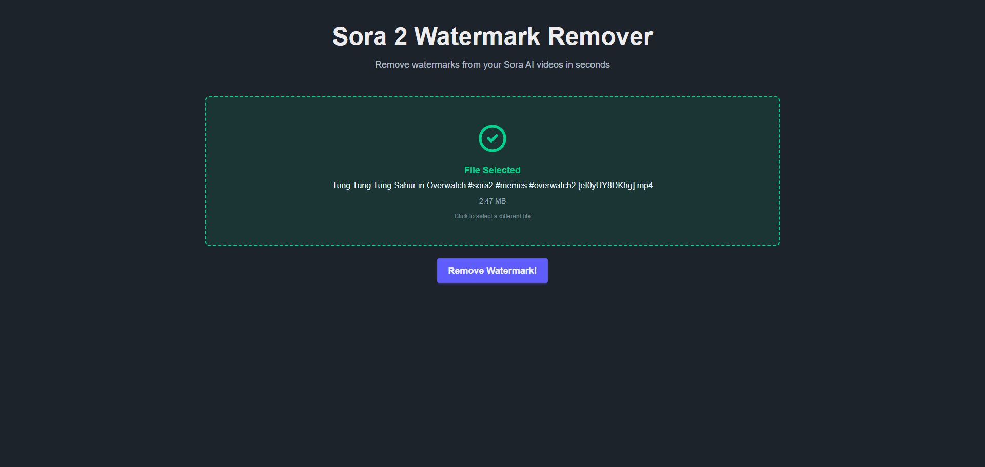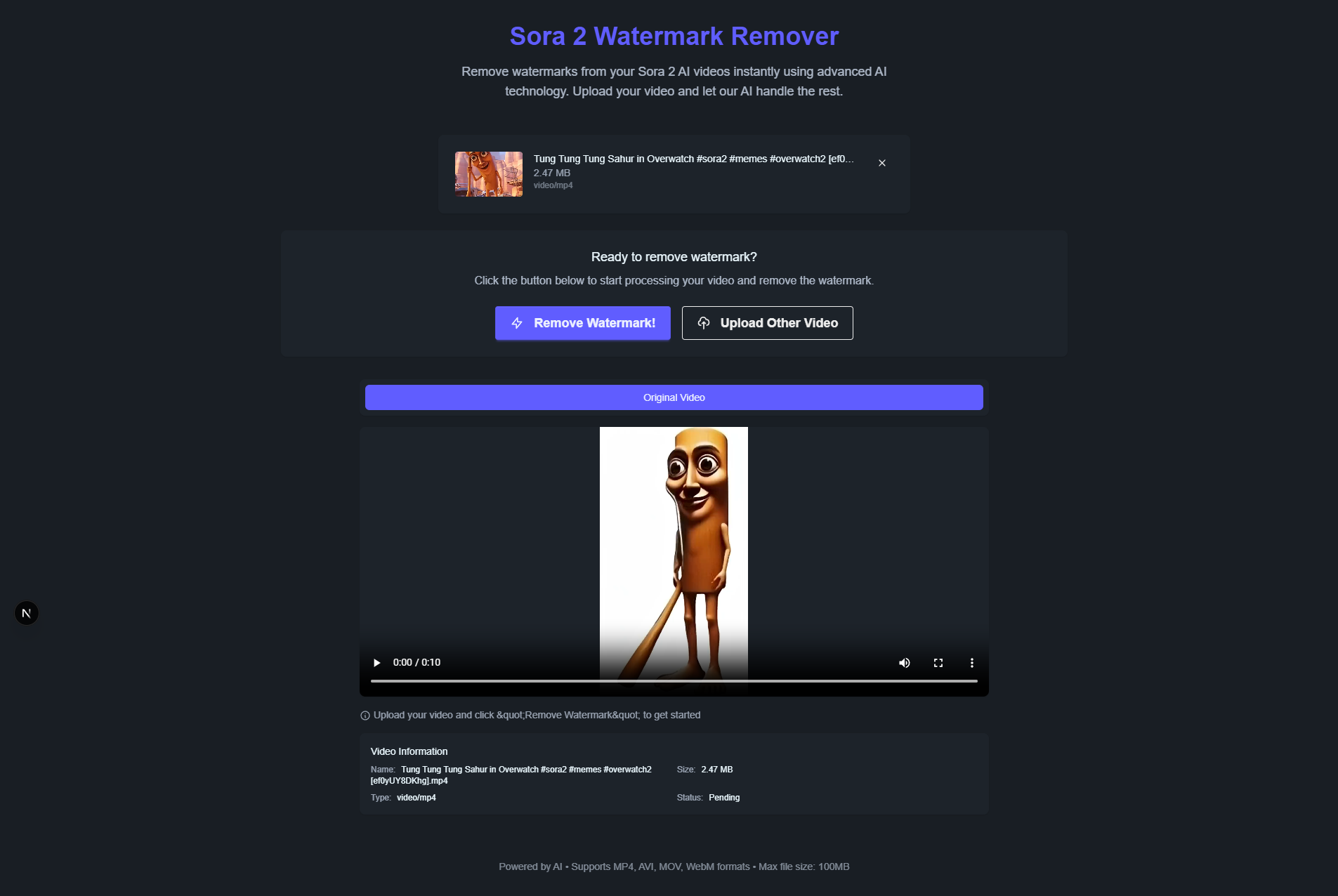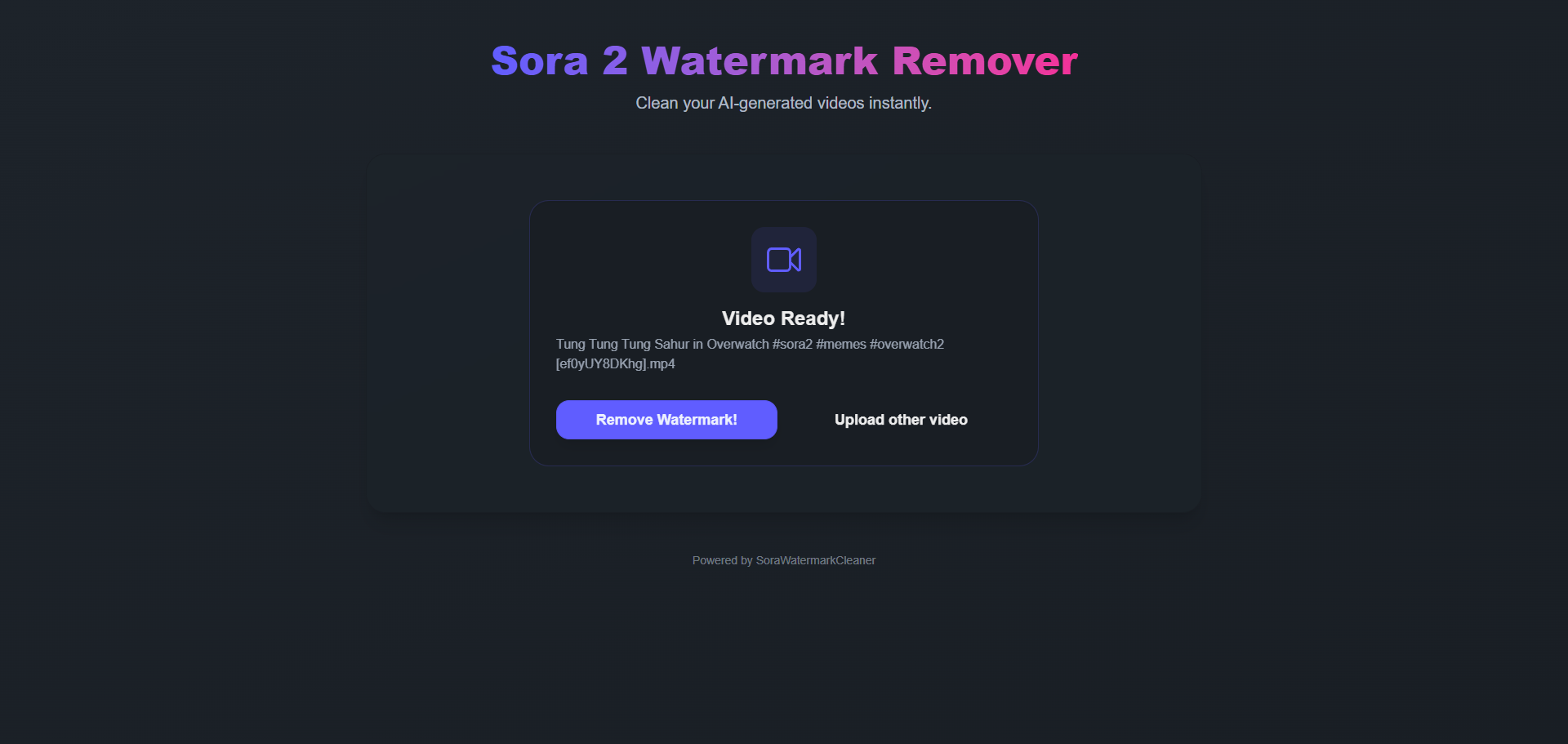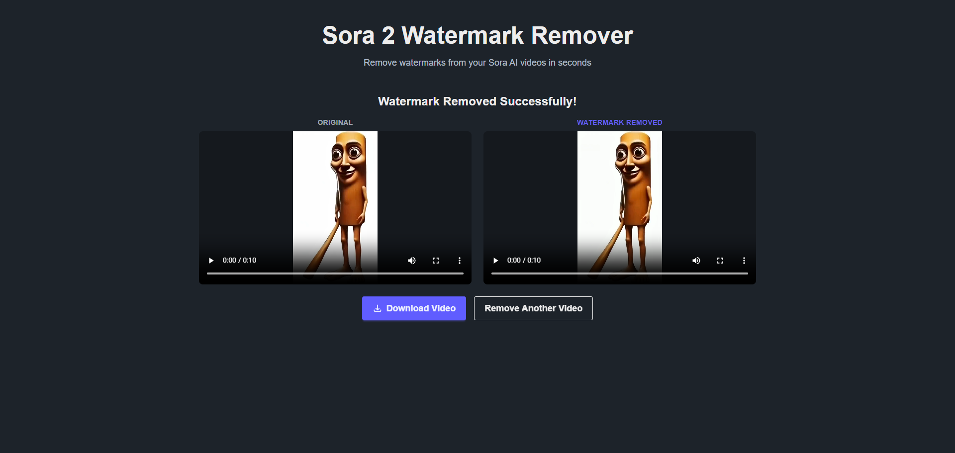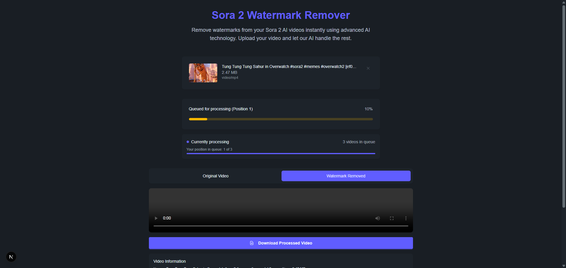 - if success show a removed watermark sora 2 video if failed show a alert modal