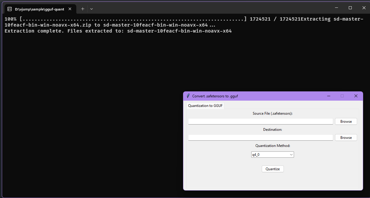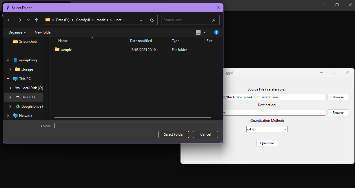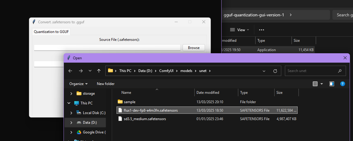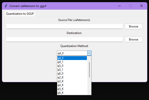 gguf-quantization-gui.exe(หากติด smartscreen ให้ run-anyway)เลือกไฟล์ Flux UNet .safetensors โดยเป็นขนาด fp16 (fp8 ทำได้เช่นกัน)