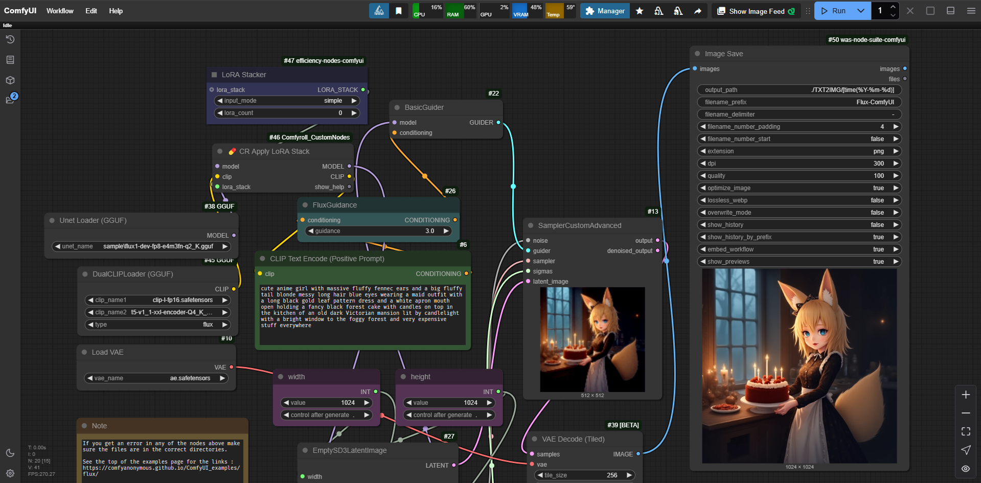 - พื้นที่ 50 GB ขึ้นไป (Flux FP16 23 GB +Flux GGUF F16 23 GB + Flux GGUF Q ต่างๆ 3-11 GB)