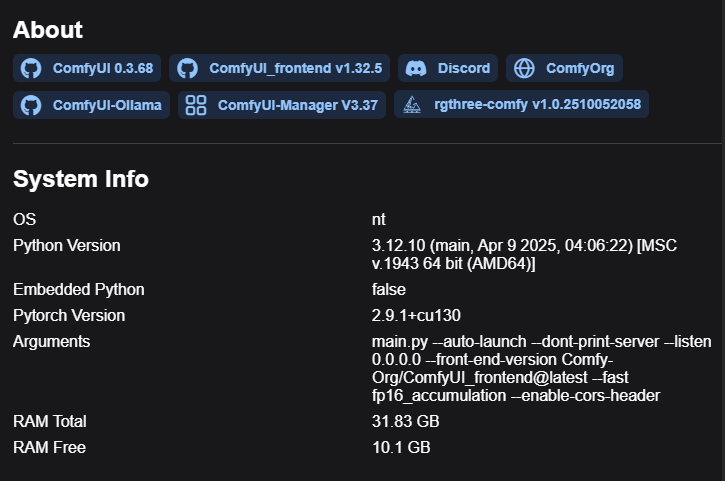 วิธีการเช็คสามารถหาได้ง่าย ๆ จาก About ComfyUI
