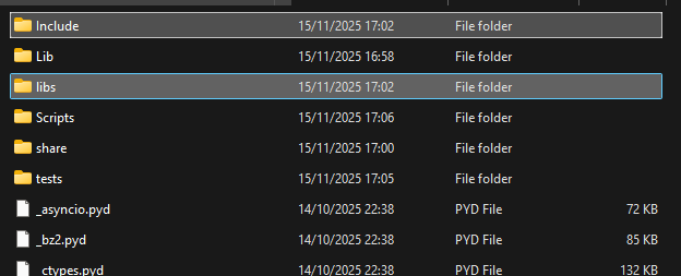 โดยใช้เช็คตาม version python โดยเช็คแค่ X.YY (เช่น 3.10, 3.11, 3.12 หรือ 3.13) แล้วทำการโหลดให้ตรงกัน และ แตกไฟล์ไว้ที่ python_embeded