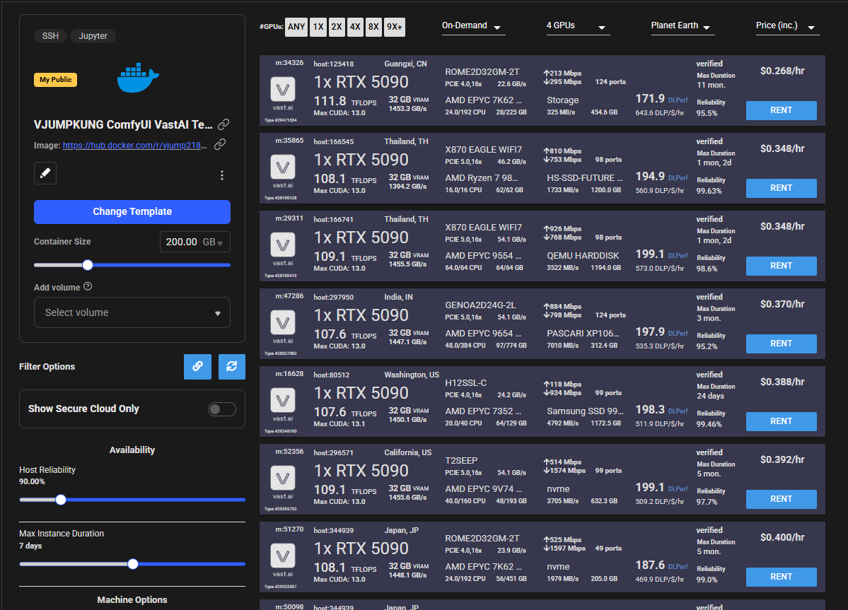 - Link Template : https://cloud.vast.ai/?ref_id=193788&creator_id=193788&name=VJUMPKUNG%20ComfyUI%20VastAI%20Template%20CU130