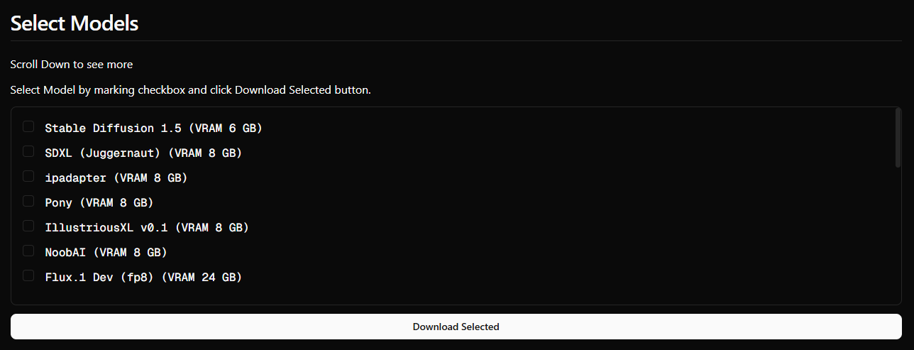ให้ใส่ link model โดยเลือกเป็น Google Drive, CivitAI หรือ Huggingface แล้วเลือกประเภทของโมเดลให้ถูกต้องและกด Download