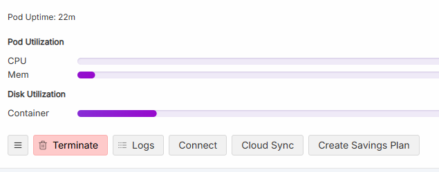 - เมื่อ stop แล้วให้ทำการ Terminate Pod เพื่อเป็นการหยุดเช่าการ์ดจอ